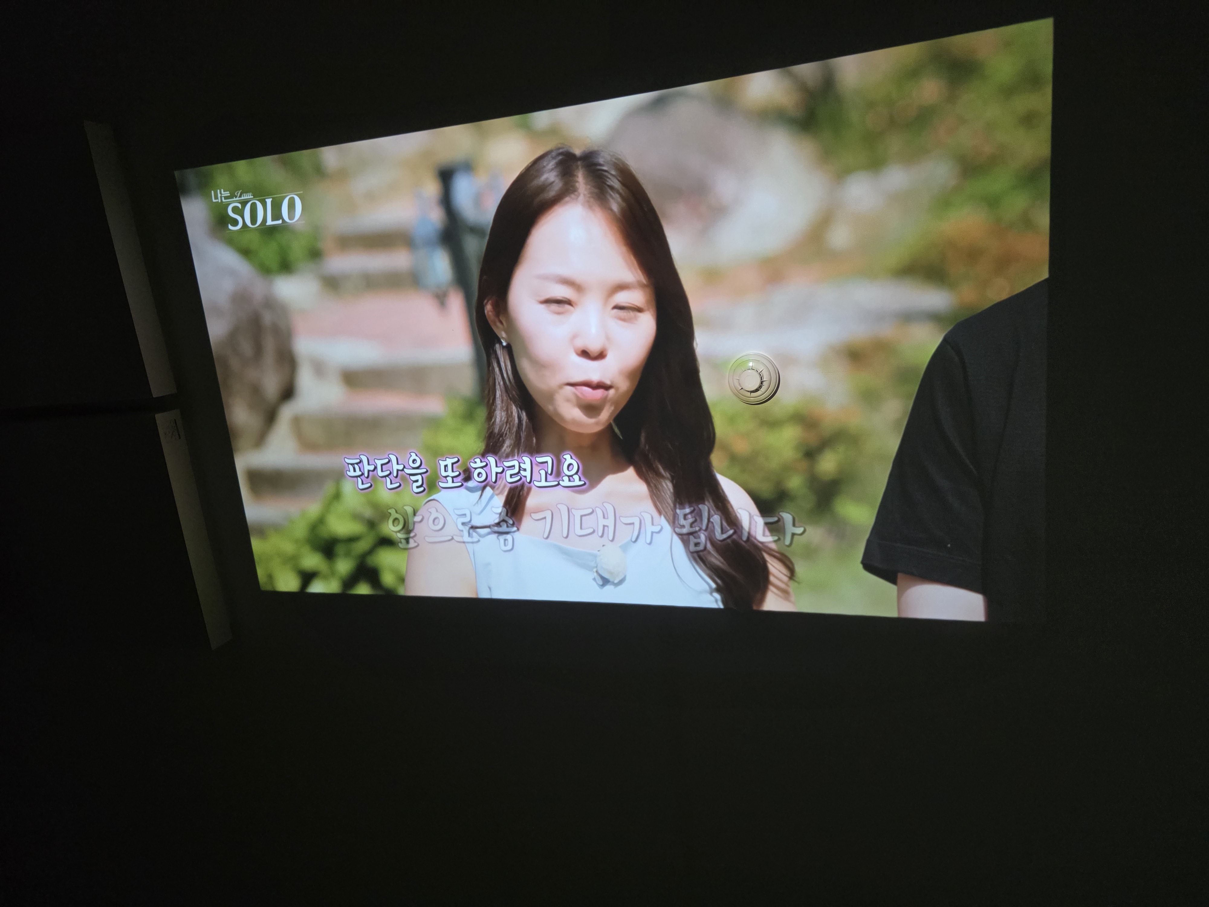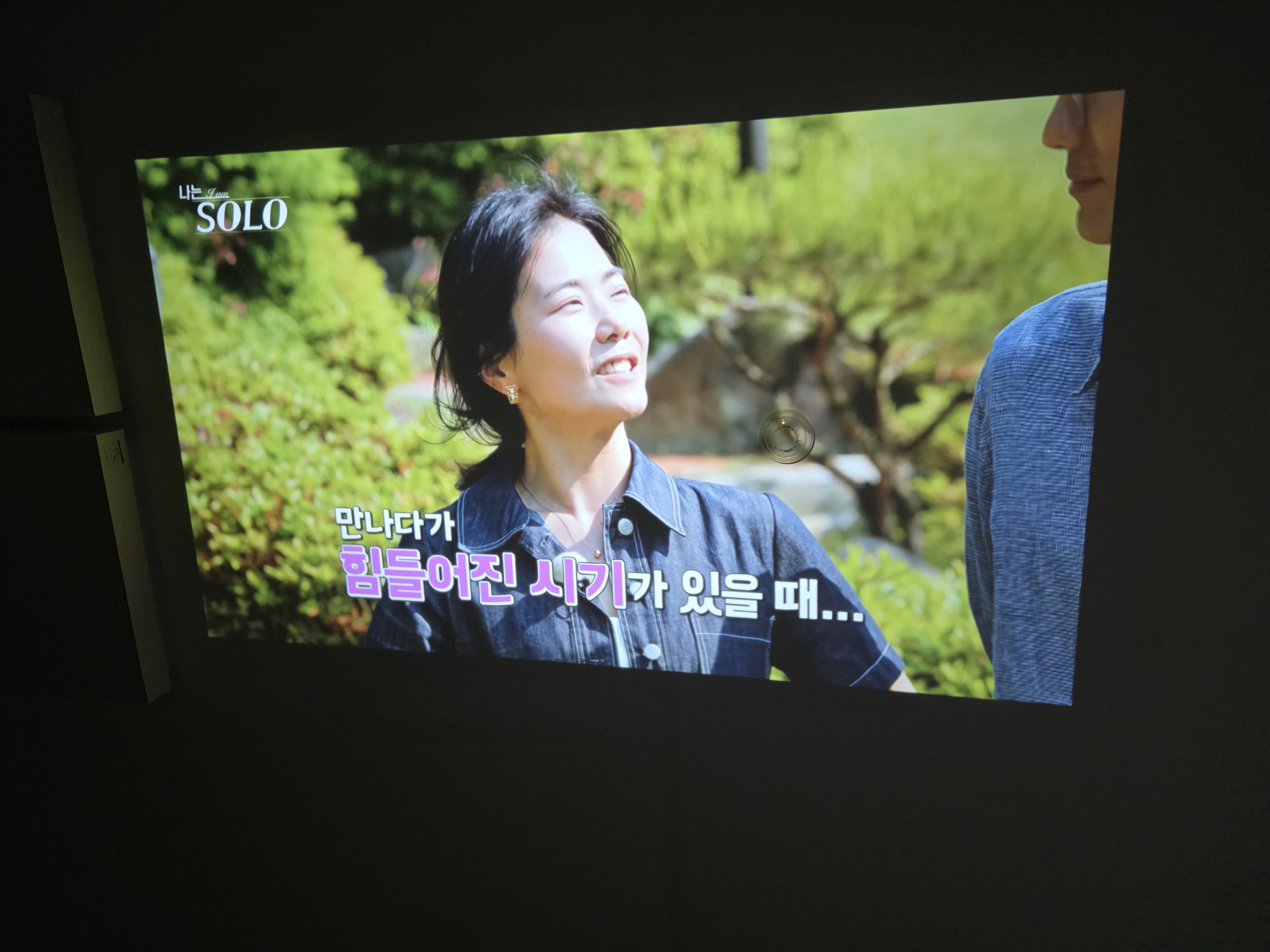 불을 끄고 투영해서 보는 프로젝터로 영상을 시청하면 비롯 그 해상도나 밝기가 조금은 낮아도 옛날 그 영화관에서 보던 느낌이 들면서 감성이 확 살죠.