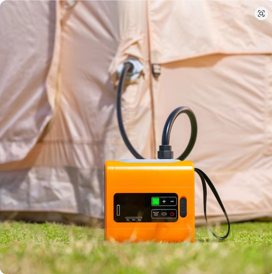 최근 제품들은 배터리 내장형으로 무선으로 편하게 에어텐트를 세우는 것이 가능해 졌습니다.