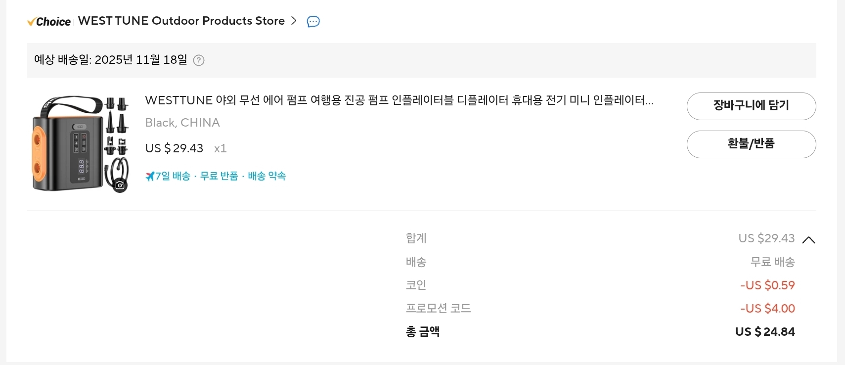 제가 구매한 제품은 westtune 사의 에어펌프 입니다.