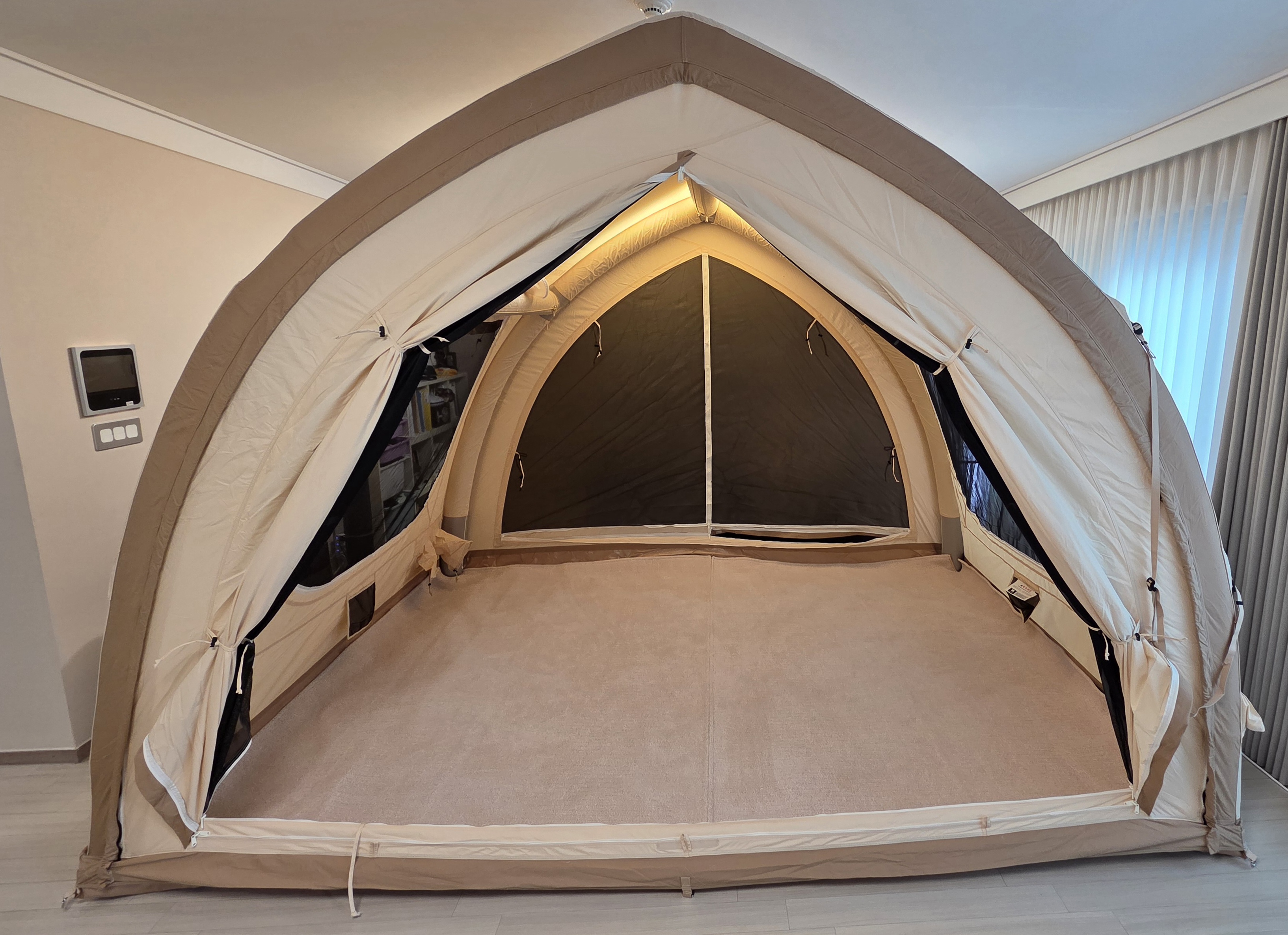 동봉되는 수동 펌프로 에어를 다 채우려면 겨울철에도 왠만한 사이즈의 텐트를 설치를